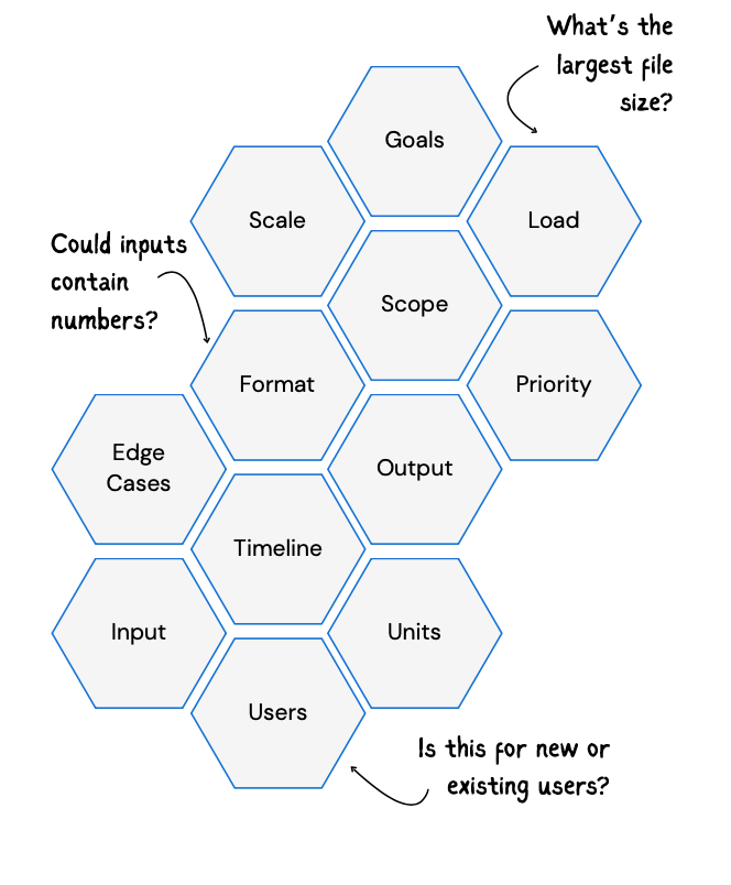 What to clarify? | e.g. You’re asked in a technical interview: “You’re given a string, and you need to check if it’s a palindrome. How would you approach this?”