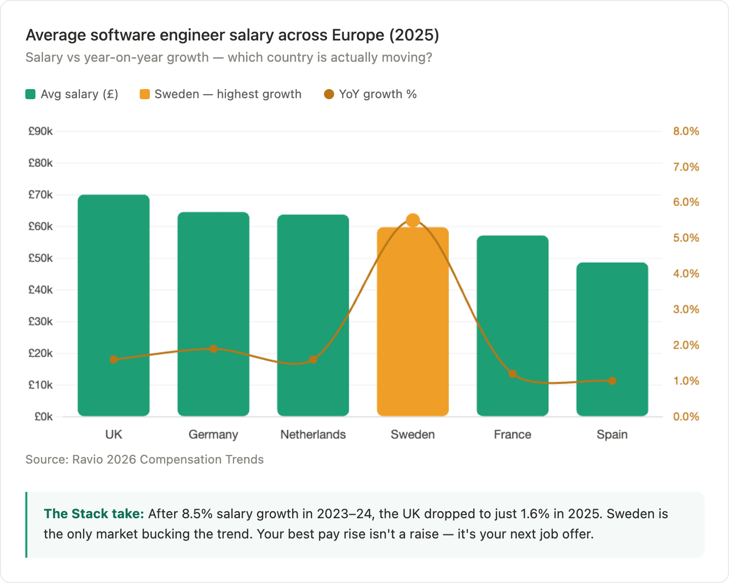 We mapped out software engineer salaries across Europe and how much they've grown over one year, and one country surprised us!